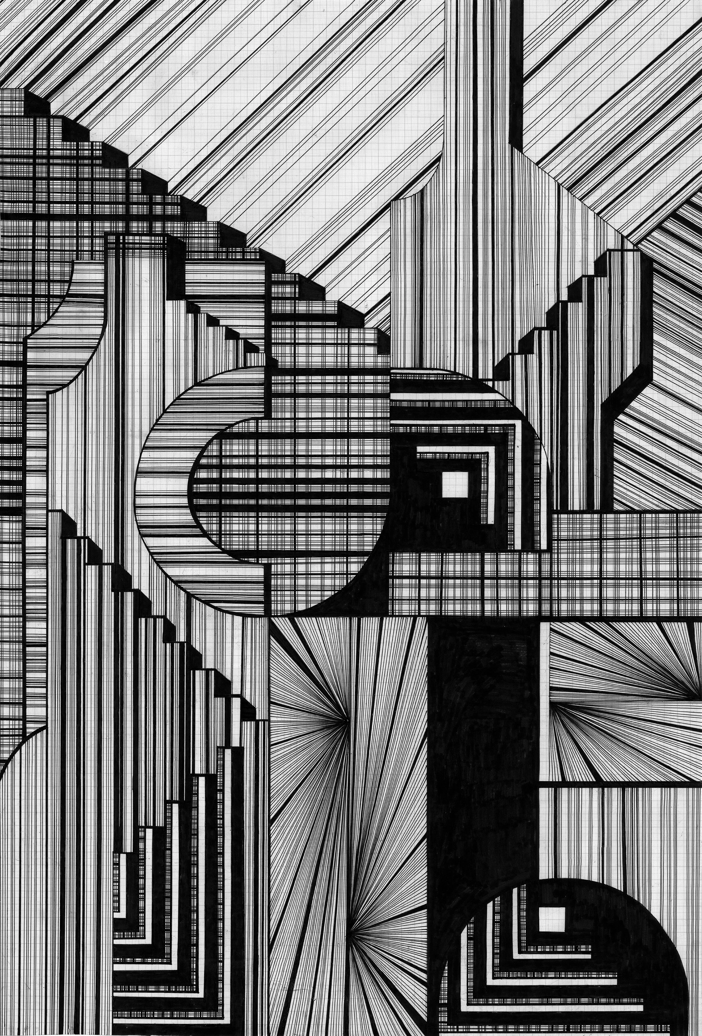 Memories From A Dream, Ink on Graph Paper, Each 14x20cm